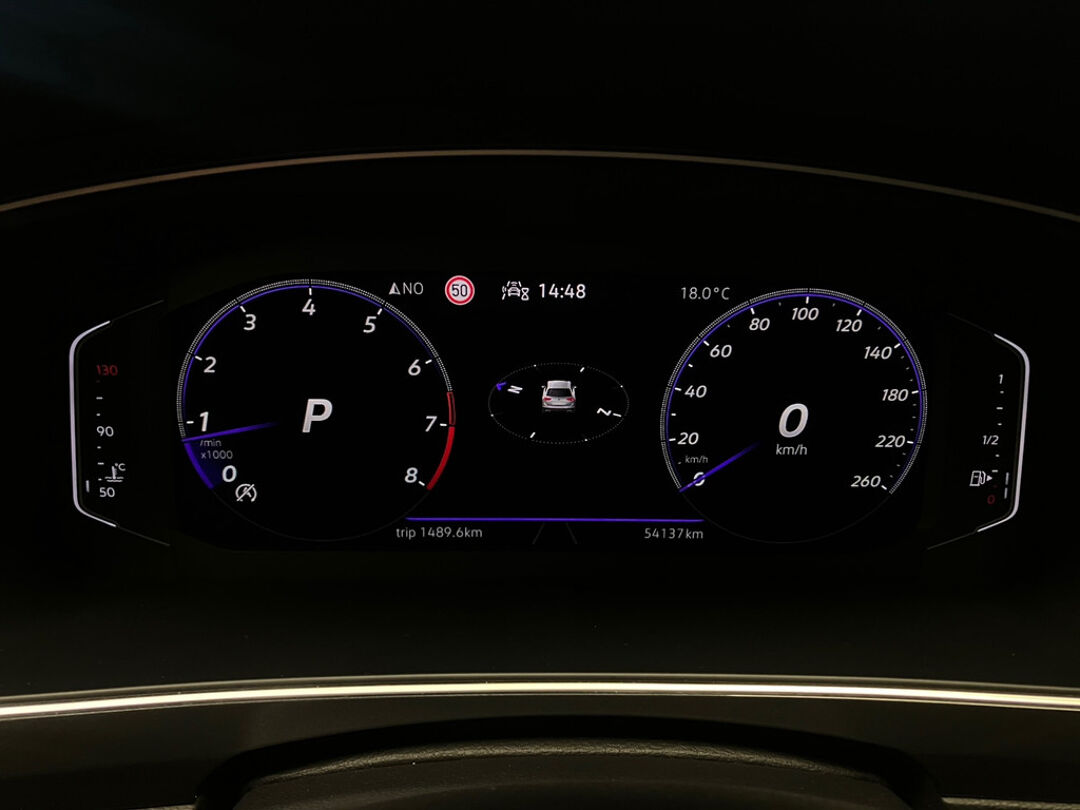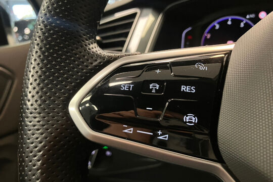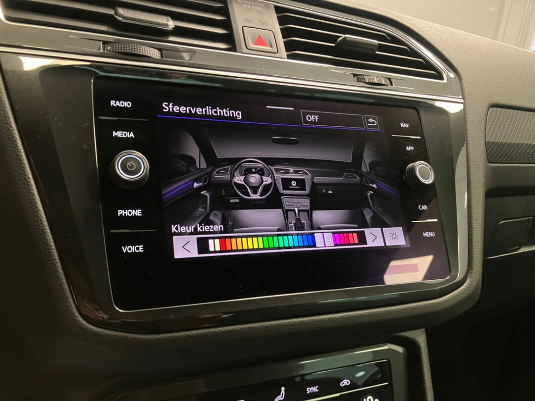 Binnenin geniet je van het sportieve R-Line interieur met comfortabele stoelverwarming, navigatie, Apple CarPlay en een achteruitrijcamera voor optimaal gemak. De adaptieve cruise control en elektrisch bedienbare achterklep zorgen voor extra comfort bij elke rit.